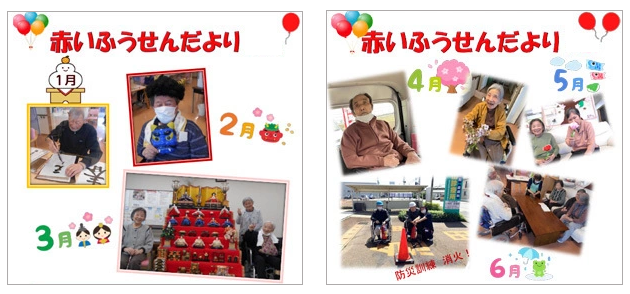 「赤いふうせんだより」は、ご利用者さまが「赤いふうせん」で過ごされている日常のご様子や行事参加(4月-お花見、7月-七夕、10月-外出レク、1月-初もうで)等のご様子を記録した年4回の工程で発行している事業所だよりです。
